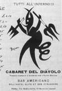 C’è il famoso volantino di Fortunato Depero per il suo Cabaret du Diable che recita: “Tutti all’inferno!!! Cabaret del Diavolo. Viaggio d’andata e ritorno per l’altro mondo”.