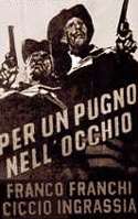 seriali, Franco e Ciccio si specializzarono nello sfornare una buona mole di parodie western (Sergio Leone fu la principale fonte a cui attinsero) e spionistiche (ovviamente ispirate alle avventure di James Bond). La cura nel confezionare questi prodotti è maggiore che altrove ed è determinata in parte anche dall’esigenza di “citare” le fonti in maniera fedele pur se personalizzata. Tra i titoli di entrambi i filoni vi sono alcuni ottimi esempi della genialità dei soggettisti, che inventano vere perle linguistiche come ” Per un Pugno nell’Occhio”, “Il Bello,il Brutto,il Cretino” o “Le Spie venute dal Semifreddo”.