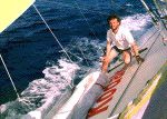 Poiché è indubbio che Giovanni Soldini con le sue regate in solitario ha introdotto la politique des auteurs nel velismo italiano, fermo ancora ai ricordi di Straulino e Rode, cioè a un neorealismo alla De Sica-Zavattini, o ai tentativi di kolossal hollywoodiano (quasi sempre fallimentari nel nostro cinema) legati al nome di Azzurra. Mentre il Soldini del mare, con le sue barche tecniche e leggere, col suo regatare giovane, solitario e in veri esterni (niente laghi, stretti, brevi bracci di mare ma interi oceani) è figlio della Nouvelle Vague della vela, che appunto in Francia ha avuto origine e maestri. Pur appartenendo ormai a un’altra generazione, come Silvio del resto, che di quella scuola è addirittura più nipote che erede diretto. Ma è indubbio che per entrambi quell’ondata è ciò che li ha spinti avanti, anche se non ci siamo mai chiesti, colpevolmente, a quanti nodi andava l’aria serena dell’ovest e non abbiamo mai guardato come veri film i video che Giovanni realizza durante le sue regate, che recano chiarissima l’impronta stilistica del film-making milanese, anche per la sua rassomiglianza al Paolo Rossi dei tempi migliori.