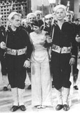 Il marinaio del nostro “Prologue” é James Cagney, attore destinato ad una lunga carriera, una vera “star” nascente della casa Warner Bros. Veniva dal tirocinio di Broadway, e al cinema si era già fatto notare come gangster nel “Nemico Pubblico” del 1931, conciliando bene i due generi opposti di film. La candida cinese è Ruby Keeler, anche lei già legata alla casa Warner da precedenti pellicole musicali. Il regista è Lloyd Bacon, uno specialista del genere. Il titolo del film è “Footlight Parade” (Parata alla ribalta), sugli schermi italiani “Viva le donne!”.