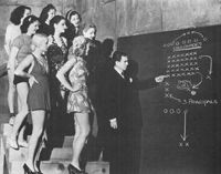 Berkeley mentre indica su una lavagna coperta di fitti segni la posizione delle ragazze in qualche scena importante.