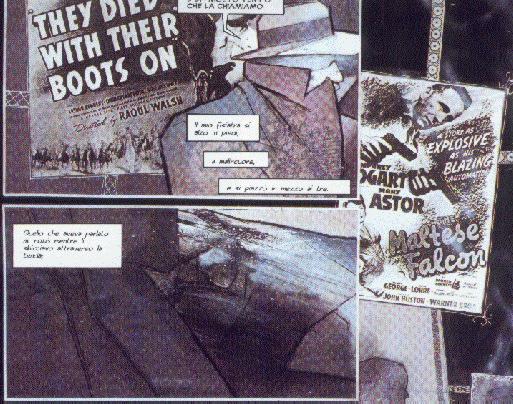 Mano a mano che il racconto del fisiatra si infittisce, aumenta vistosamente la presenza sullo sfondo di locandine cinematografiche ad accompagnare il testo, mai arbitrarie nel loro apparire, ma ogni volta consone alla circostanza che ne viene così ulteriormente rafforzata. Possiamo così notare, tra gli altri, i manifesti de “Il mistero del falco”, “La storia del generale Custer”, “Nemico pubblico”, “L’uomo che sapeva troppo”. Lo stesso personaggio narrante, improvvisamente trasfigurato dal ricordo, diventa identico a Peter Lorre (alle sue spalle una locandina: “Wine of youth”). Una prosa come quella di Gaiman andrebbe letta in inglese, ma la traduzione è sicuramente all’altezza; traduzione che, invece, non arriva per “From Hell”, il capolavoro di Alan Moore perennemente