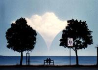 C’è poi un’evoluzione nella scelta dei soggetti. Pur essendo dei quadri sempre surreali, tecnicamente molto realistici e ricchi di ironia, ho cominciato ad inserire la figura umana, prima del tutto assente. Questa è una cosa inedita, perché prima c’erano solo dei paesaggi urbani o naturali che presentavano solo delle tracce di umanità. Come vede c’è un minimo di evoluzione…