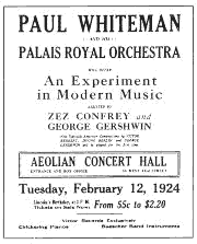 Paul Whiteman è un personaggio essenziale nella storia di Gershwin. Fisicamente rassomigliava un po’ a Oliver Hardy, ma non aveva niente di comico: un uomo intraprendente, pieno di iniziative, talvolta anche audaci. Nato nel 1890, era passato alla musica come violinista, e dopo la guerra aveva creato una sua “Dance Band” che ebbe subito successo grazie anche ai suoi ottimi solisti e al suo orchestratore di fiducia, Ferde Grofé. Nel pieno della sua carriera si autonominò “The King of Jazz”, dal momento che la sua orchestra, attiva specialmente in California, suonava una musica leggera e orecchiabile che lui aveva definita impropriamente come jazz. Nel 1930 uscì per gli schermi un film-spettacolo con il medesimo titolo e con l’orchestra al completo.