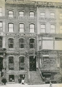 La lunghissima Ventottesima Strada di Manhattan incrocia ad un certo punto due vie parallele, la Quinta e la Sesta Avenue, e questo spazio urbano era noto come la “Tin Pan Alley”. Oggi c’è un grande mercato di fiori. Questo strano nome un po’ ironico e dal suono metallico voleva dire “Viale dei tegami di stagno”, in armonia con i suoni e i fragori che uscivano dalle tante case musicali disseminate lungo il percorso. Era il quartiere delle canzoni e del loro commercio. La musica popolare agli inizi del secolo non aveva altro mezzo di diffusione che la diretta esecuzione ripetuta molte volte, e quella era la sede giusta per questo scopo.
