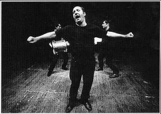 AA: È una scena che sembra staccata dal resto. In realtà, intende mostrare cosa succede quando la religione diventa lavoro. Lui, l’ uomo bomba, è un integralista che abbandona le sue cose per fare l’amore con la donna cannone. La religione diventa lavoro diventa integralismo, diventa alienazione. Mentre la ballata finale è un omaggio, perché lo spettacolo non è altro che un grande omaggio al Nord, ma veramente una grande prova d’amore, secondo me, una prova d’amore sincera. è facile dire, con l’umorismo che sta imperando da un po’ di anni, “tutto bello, però che cattivo lui”. Un po’ di cinismo non guasta. è una prova d’ amore, dicevo, ma è anche una ballata. E come ogni ballata vuole essere anche felice, anche leggera.