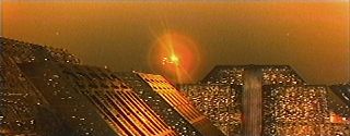 L’enorme finestra che si apre sulla parete di fondo, rivela l’immagine dell’esterno della costruzione, anch’esso dominato dal linearismo e dalla simmetria . Le stesse inquadrature, finché si concentrano sull’ambiente, sono di preferenza frontali. Il ridotto numero degli elementi d’arredamento, non fa che aumentare il generale senso di ordine; siamo in un luogo di potere, al cospetto di Tyrell, il genio della biomeccanica e l’ambiente non fa che rispecchiare e descrivere le capacità di quest’uomo. La seconda ed ultima sequenza ambientata all’interno della gigantesca piramide, rivela invece la camera da letto di Tyrell, e subito appare evidente la differenza rispetto alla stanza mostrata precedentemente. Simmetrie e linearismo hanno lasciato il posto ad un ambiente ingombro di oggetti ed in cui, differentemente dall’altro, la scarsa e vibrante luce delle candele, rende difficoltoso allo sguardo spaziare senza ostacoli; anche le inquadrature sono mutate, prediligendo un approccio obliquo. Non è più l’ordine l’elemento che governa questo ambiente, rivelando come l’inaccessibile fortezza della Tyrell si sia trasformata in un luogo in cui il pericolo e la morte possono infiltrarsi senza difficoltà, divenendo teatro di un duplice omicidio. Il caos che era stato mantenuto al di fuori, nelle strade, è penetrato all’interno, consentendo ad un replicante di uccidere il proprio creatore.