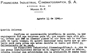 La prima è del 13 agosto 1940 e porta la firma di Arturo de Cordoba, un attore messicano destinato a una lunga carriera, valido interprete nel 1956 del film “El” di Luis Buñuel. L’attore si dichiara entusiasta di un progetto che sta maturando: Dolores protagonista, Gabriel Figueroa fotografo, e regista Chano Urueta, che conosceremo tra poco. Questi nomi importanti sarebbero la premessa per un’edizione di “Santa” assolutamente indimenticabile. De Cordoba dice chiaramente all’amica Lolita che il film sarebbe per lei, attrice con tutta una carriera americana, “una entrada triunfal en el cine hablado en español”, cioè nel cinema parlato in spagnolo. Quanto a lui, si propone per uno dei due ruoli principali accanto a Ferdinando Solér, altro attore emergente.
