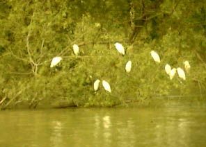 Sullo specchio d’acqua calmo e gonfio di riflessi d’argento, staziona una colonia d’aironi bianchi.