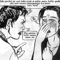 l’individualità. Difficilmente protagonisti graficamente anonimi sarebbero in grado di reggere il passo di una dialettica forte e ben studiata tra momenti di dialogo ininterrotto e silenzi più interrogativi, tra la frenesia delle situazioni di gruppo e la riflessione individuale, tra la tensione e la serenità che pervade in egual misura le storie; per quanto fondamentale il senso del dialogo e l’importanza conferita al testo, quelli della Abel sono protagonisti che escono positivamente anche dall’esame sul piano stilistico e della resa grafica.