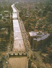 GDE: Sì io ho avuto il primo approccio con Sarajevo nell’86 quando lavoravo per la Rai, avevamo fatto un giretto in Serbia e in Bosnia con l’allora collega della Rai Piero Panizon e le nostre relative consorti per un film che dovevamo fare. Poi il film come molte cose della Rai non s’è fatto però ci è rimasto questo contatto con questa città incredibile, giovane, internazionale, sovranazionale, dove tutte le etnie dell’ex Jugoslavia convivevano e tutte le religioni convivevano, cioè dai cattolici dai cristiani ortodossi, dagli ebrei dai musulmani dai serbi dai bosniaci dai croati dagli sloveni tutti stavano molto bene. Poi ho avuto il privilegio di lavorarci l’anno dopo producendo un cd — no, non era ancora un cd — un disco in vinile di un cantautore croato, Mario Mhailevic che aveva fatto una compilation delle più belle canzoni dell’ex Jugoslavia dal dopoguerra a quella data. C’ero stato lì circa sei mesi e quindi avevo avuto modo di apprezzare questa meravigliosa città universitaria, giovane, fresca, divertente e divertita, dove tutti quanti stavano bene. Poi a un certo punto me la son vista ammazzata dall’idiozia della guerra in assoluto ma anche dalla supponenza, dall’arroganza, dall’ignoranza di noi — devo dirlo — cugini vicini di casa che non ce n’eravamo accorti di quello che stava succedendo.