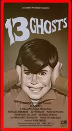 Il gimmick para-tecnologico ritorna, assieme al numero cabalistico, in 13 Ghosts. L’idea nasce dai disturbi alla vista che il regista aveva avuto durante le riprese: perché non trasformare quegli occhiali che gli avevano protetto gli occhi in strumenti di visione fantastica? Ed ecco, facendo il verso al brevetto per wide screen chiamato “Todd-a-O”, che il film si dichiara “girato in “Illusion-O”: ad ogni spettatore viene consegnato, free, un “ghost viewer”, cioè degli occhialini vedi-fantasmi simili a quelli usati per il 3-D. Quando l’attore sullo schermo mette certi particolari occhiali che gli fanno vedere gli spettri, il pubblico deve fare altrettanto e li vedrà anche lui. Ma questa volta il gimmick è doppio perché gli si affianca anche una trovata commerciale, per la verità un po’ truffaldina: ogni spettatore riceve una chiave che potrebbe essere quella che apre la casa dei fantasmi, una vera casa, che trova però in Francia. Chi vuole provare se è quella buona non ha che andare fin là a vedere .