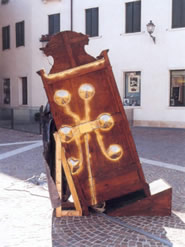 Commento al “VASO DI PANDORA”, mostra dello sculture Romano Abate in occasione della rassegna “PHADA MURGANIA”, Rotonda di Badoere (Morgano-Tv), dal 18 novembre al 2 dicembre 2001.