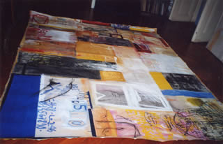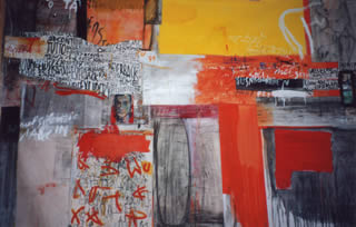 PCK: Ciò che scrivo non è che il risultato di un’interferenza tra me e il mondo esterno, un modo di risolvere il quadro. Non sempre si tratta di parole scritte o scelte da me. Mi è stato chiesto, ad esempio, di dipingere dei quadri in onore della Beata Eufemia: in questo caso l’elemento scritto era costituito dalle pagine di un libro sulla vita del personaggio, libro che al contempo fa da supporto per la mia pittura.