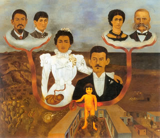 Diversi anni dopo, in un suo quadro del ‘36 — “I miei nonni e i miei genitori” — lei avrebbe dipinto una bambina di tre anni, cioè se stessa, nuda nel patio della “casa azul” con tre coppie, padre, madre e rispettivi genitori di entrambi: uno dei suoi tanti lavori pieni di simboli e di fantasia.