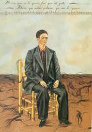 Il 7 novembre del ‘37 Frida manda a Trotzki un suo delicato autoritratto, nel quale non è la solita pittoresca “tehuana” in costume tipico, ma un’elegante signora con un foglietto in mano, sul quale si può leggere “…con todo mi cariño…” (con tutto il mio affetto) Era il compleanno di lui, e un preannuncio del congedo.