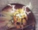 Nella prima stanza c’è ancora l’uomo in croce, ma la parete di fianco ospita una serie di oggetti strani in caduta dall’alto. “STATIGRAFIE DI UN PUNTO FERMI”. L’immagine del grande fisico è in un più d’uno dei piatti appesi che ruotano nella zona di mezzo. Chissà cosa pensa dei nostri dubbi sulla scienza. Due vasi appesi all’estremità della composizione. Penso sia rappresentato il punto che si spezza. Esce Fermi con le sue tabelle ed i calcoli matematici. Poi, l’ultimo vaso, è sovrastato da aeroplanini di carta che ospitano i frammenti di una poesia: con immane violenza gli aeroplani si suicidano schiantandosi sul punto, vomitano una lingua di poesia nell’etere srotolato della storia. Fermi così esplode la minibomba poesia, un atomo onirico che le sfere strati del punto colgono nell’attimo. Los Alamos ritorna un Eden di radiazioni sfavillanti.