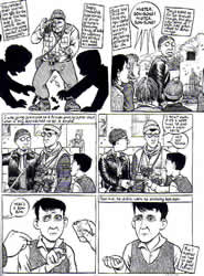 JS: Non so come definirmi: non è che penso a me stesso come a un nuovo giornalista… Ho detto giornalismo a fumetti perché è ciò che faccio, ed è un modo semplice per spiegare alle persone cosa faccio: è il termine più facile. Quello che faccio è fumetto. È giornalismo in formato fumettistico, e può suonare strano, ma è una commistione perfettamente organica dei miei due amori, i miei due interessi: ho studiato giornalismo — ho una laurea in giornalismo — e faccio fumetti da quando ero bambino. La mia carriera giornalistica non ha mai avuto sbocchi concreti; ho cominciato una carriera nel campo del fumetto, e unire le due cose mi sembrò molto naturale. Non è che avessi questa gran teoria, dietro. Fondamentalmente, cerco di presentare informazioni sul mondo, o su luoghi che mi interessano, in formato fumettistico. Mi comporto prevalentemente come un giornalista quando sono sul campo, e poi lo traduco in formato fumettistico.