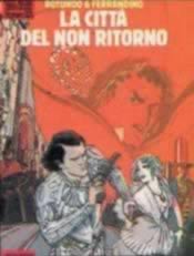 Questa che segue non è una vera bibliografia perché pur se il materiale prodotto da Ferrandino è tanto e di livello tendenzialmente ottimo, ben poco è stato ristampato in volume. Cominciamo dalla fine: Storia di cani è stato raccolto in volume da Granata Press ed Il Re e il vaso è composto da due albetti spillati editi da Phoenix. Nessuno dei due, però, è facile da trovare (nel colofon di entrambi i fascicoli de Il Re e il vaso si legge un impietoso “prima tiratura: 2000 copie”, e non c’è traccia di seconde tirature). Sera Torbara è ospitato sui numeri 31 (Il volo degli dei) e 50 (Le lacrime di Giuda) della collana Gli albi Orient Express, edita prima dall’Isola Trovata e poi da Bonelli. Anche i due volumi del ciclo de I signori del silenzio sono stati pubblicati nella stessa collana: sono i numeri 23 (La città del non ritorno) e 40 (L’isola degli uomini stanchi). In entrambi i casi però le serie sono tronche visto che gli ultimi episodi con la conclusione delle vicende non sono mai stati realizzati. Comunque, Sera Torbara è così appassionante e coinvolgente da poter essere letto con piacere anche se privo di una vera fine. Questi quattro Albi Orient Express non sono rarissimi ed è possibile trovarli anche a un buon prezzo (tendenzialmente sulle 15000/20000 lire, ma ovviamente l’arrotondamento all’euro dei librai può riservare qualche sorpresa).