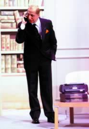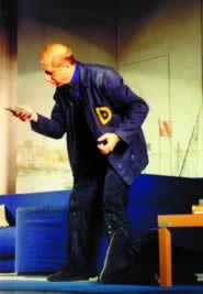 Pippo Franco (PF): Il teso originale non è così, è soltanto una farsa, cioè soltanto il meccanismo e io ho riadattato questo meccanismo riscrivendolo quasi interamente, dandogli anzi tutti quei contenuti di cui ha parlato, perché si prestava ad un racconto di questo tipo. Personalmente non amo un teatro semplicemente divertente anche perché ritengo che sotto il divertimento ci sia sempre qualche cosa di più profondo, basta considerare che l’ironia, l’allegria è una forma di spiritualità: tutti i grandi santi erano ironici a partire da S. Francesco per finire con Padre Pio, ma anche ad andare avanti, mi auguro, quindi sotto questo meccanismo c’è molto di più. Soprattutto io amo quel teatro in cui si spiega al pubblico perché avvengono quelle cose: dietro al tradimento di una moglie nei confronti del marito e viceversa, c’è sempre qualcosa di più profondo, un disagio che noi cerchiamo di analizzare e di spiegare, senza dare per scontato il tradimento come fa tutto il teatro. Ci sono tante altre cose, tanti altri arricchimenti. La scelta è stata motivata dal fatto che questo meccanismo poteva raccontare molto di più.