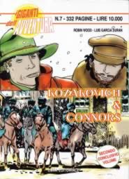 Nel settembre del 1982 Skorpio inizia la pubblicazione di Qui la legione, serie avventurosa scritta da Wood. Il successo sarebbe stato eclatante ma è imputabile principalmente all’evocativo e appassionante lavoro svolto dallo sceneggiatore. Garcia Duran, infatti, continua ad affossare delle felici intuizioni grafiche con pesanti campiture e si limita ad abbozzare alcune figure narrativamente importanti pur di dedicarsi all’accumulo di pennellate che tolgono grazia ed equilibrio alle sue tavole. Ma progressivamente le incertezze e le soluzioni improvvisate dei primi episodi spariscono con il procedere della serie. Quando Garcia Duran passa il testimone a Beto Formento ha raggiunto una notevole pulizia del tratto, anche se qualche ripasso troppo spesso o qualche colpo di pennino superfluo ne impediscono ancora la massima godibilità. Le premesse per un ulteriore miglioramento ci sono tutte e difatti con le successive miniserie Leticia Gray e La selvaggia (entrambe su testi di Barreiro) il suo stile raggiunge nuovi traguardi. La tavola “esplode” e le anatomie prendono vita diventando dinamiche ed espressive; i retini vengono applicati con oculatezza e non sono invasivi. Garcia Duran è ormai “arrivato”, il suo percorso artistico sembra aver raggiunto il suo compimento. Ma nel 1988 Lanciostory ospiterà la definitiva evoluzione del disegnatore, un’opera che si mantiene per quasi tutti i suoi 43 episodi su livelli di equilibrio formale praticamente perfetti: Kozakovitch & Connors.