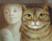 Parlare di Leonor Fini vuol dire parlare di gatti. Il gatto torna di frequente nelle sue opere, e con gli anni ’70 sostituisce i soggetti umani. Gatto è per lei sinonimo di spirito interrogativo, di acutezza sensoriale, di desideri inconfessabili e alla fine immagine autobiografica antropomorfa. Già nel quadro “La Vie Idéale” (1950) i sei gatti ritratti che attorniano la figura femminile, probabilmente la pittrice stessa, la venerano intriganti. Lei mescola spesso il regno umano a quello animale e crea nuove regole dove è l’animale a emergere. La sublimazione tra donna e animale trova poi la perfezione nella figura del gatto. “Les Mutantes” (1971) ci offre insolite bambine che stringono a sé i felini e nell’espressione del volto, nella bocca, assumono le forme del gatto. Grazie al gatto Leonor s’immerge in un universo straniero, tenero e selvaggio insieme, che le è molto congeniale. Se la donna di Leonor non si sottomette all’uomo, la troviamo spesso cedere al gatto, assoggettarsi a lui e vegliarlo. La pittrice scrive anche storie e racconti con protagonisti i gatti, come “Mourmour, conte pour enfants velus” pubblicato nel 1976. Ma il gatto è anche simbolo della morte, elemento sempre presente nell’arte di Leonor Fini: una morte solenne e affascinante, vestita d’abiti notturni, lugubre e radiosa, fatta di opposti, controversa come la pittrice. E sono gatti rossi o di un nero profondo, blu oltremare, grigio-verdi, colori teneri, acerbi, folli. Emergono immagini dell’infanzia dove la fantasia galoppa, i gatti di Trieste, le conchiglie dell’Adriatico, il sole lontano e irraggiungibile e le sue ombre in cui Leonor ricerca una risposta o un conforto alle inquietudini. Le illustrazioni per “Miroirs de chats”, con un testo di Jacques Audiberti, sono un inno al mondo felino che la pittrice studia da sempre e che l’attornia dall’infanzia: immagini fantastiche dove i gatti sono i protagonisti, gatti che diventano uccelli o figure mitologiche, e alla fine gatti che si antropomorfizzano mentre la donna diventa felino. Dipinge i volti dei gatti e degli umani allo stesso modo, ritratti poetici e intensi accomunati dalla profondità di una sapienza o conoscenza ancestrale che indugia sui loro volti. Nell’85 esce “Chats d’Atelier” libro che raccoglie quadri, illustrazioni e disegni di Leonor dedicati ai gatti, le opere sono accompagnate dalle foto che Tana Kaleya scatta ai gatti della pittrice.