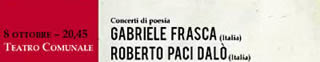 Gabriele Frasca (Napoli, 1957) — Ha pubblicato raccolte di versi, romanzi, saggi e traduzioni (Samuel Beckett e Philip K. Dick) per editori come Einaudi, Cronopio, Meltemi, Costa & Nolan. La compagnia Giardini Pensili è stata creata nel 1985 a Rimini come ensemble basato sulla collaborazione tra artisti, teorici, tecnici per la creazione di opere legate alla sensorialità e all’incontro di tutte le arti. Al centro del lavoro l’investigazione sul linguaggio, sulle nuove tecnologie, sulla relazione tra memoria e modernità, sull’esplorazione e intervento nello spazio urbano e nel public space, sul suono in ambito architettonico e spaziale. Presenta suoi progetti nei principali teatri e festival in Europa, Americhe, Medio Oriente, Russia.