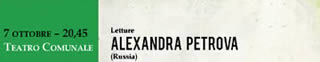 È del 2003 l’operetta filosofica in dieci scene I pastori di Dolly. Oltre che in italiano (una trentina di poesie sono uscite sulla rivista Poesia nel numero di dicembre 2002, che le ha anche dedicato la copertina; nel 2003, numerose sue poesie sono state tradotte nell’antologia La nuova poesia russa), i suoi testi sono stati tradotti in ebraico, inglese, slovacco, portoghese e cinese. Alexandra Petrova, poetessa russa tradotta e stimata internazionalmente, porta con sé la sua forte ed intensissima poesia fatta di immagini fulminanti e spietate.