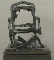 Null’ultima scena del film “Zabriskie Point” (Michelangelo Antonioni, 1970), in cui viene mostrato l’esplodere di una casa da diversi punti di vista, sono dapprima i muri a scoppiare, poi il frigorifero colmo di vivande, poi l’armadio, dal quale si sparpagliano nell’aria i vestiti . Gli oggetti assumono tutta la loro importanza nel momento in cui svaniscono moltiplicandosi in mille frammenti. Allo stesso modo, nello stesso periodo, Arman fa scoppiare gli oggetti, li brucia e ce ne mostra solo i resti. Di quest’apologia dell’avanzo è eccellente esempio Fauteuil d’Ulysse (1965), ovverosia ciò che resta della combustione di una poltrona, successivamente resinato. Viene quindi reso eterno il fugace attimo della sua massima instabilità e trasformazione, quello tra lo stato di prezioso oggetto funzionale e rifiuto.