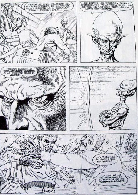 EGS: Non ho realizzato nulla per L’Eternauta ma ho fatto alcuni disegni come prova per uno studio di disegnatori, si pensava di fare qualcosa con vari collaboratori ma con me non funzionò. Delle immagini che mi hai mostrato ho fatto solo l’inchiostrazione.