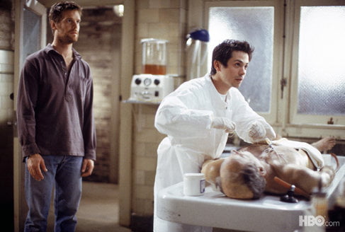 In un’altra scena, Federico, il “restauratore di salme” che collabora con i Fisher, si vanta del proprio lavoro, mostrando entusiasta a un perplesso Nate foto di cadaveri sfigurati e successive “ristrutturazioni”. Commentando la decisione di cremare i corpi così sapientemente restaurati, Federico esclama “what a fucking waste!” (“che cazzo di spreco!”), il cui equivalente nella versione italiana, “tanto lavoro buttato al vento”, oltre ad essere oggettivamente carente dal punto di vista traduttivo, nasconde l’atteggiamento a dir poco disinvolto di Federico nei confronti del suo lavoro, atteggiamento che gli procurerà, in un’altra occasione, i rimproveri del diligente David; Federico, inoltre, ha uno status inferiore rispetto agli altri personaggi, e quindi ci si può aspettare da lui un lessico crudo ed esplicito.