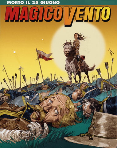 Certo, come già scritto, il meglio qui è rappresentato da quel sapiente mix tra mondo delle tradizioni indiane e vicende storiche. Per quanto concerne queste ultime, Manfredi ha avuto il coraggio di far vivere a Magico Vento e Poe un evento storico che ormai è diventato un classico rappresentato innumerevoli volte in film, libri e fumetti: la battaglia del Little Big Horn che fa da sfondo alla storia del Generale Custer. Manfredi ha accettato la sfida di affrontare quindi un mostro sacro, topos narrativo con cui si sono misurati, con alterna fortuna, gran parte degli scrittori o sceneggiatori del genere western. Come non farsi catturare dal fascino di questa battaglia così epica, senza però correre il rischio di banalizzarla? Manfredi la tratta presentando un intero ciclo di storie che girano attorno, prima e dopo, al Little Big Horn. Ne esce una saga che costituisce senza dubbio il punto più alto della serie. Mi spingo oltre: nella vasta produzione bonelliana, che da più di venticinque anni fa parte della mia cultura fumettistica, il ciclo delle guerre indiane di Magico Vento credo sia uno dei migliori in assoluto. Questo perché Manfredi espone tutto il contesto storico, politico, militare ed economico che fa da background alle avventure.