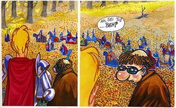Opera incompiuta, appunto, rimane Zanardi medievale, una delle migliori storie di Pazienza, in cui si possono apprezzare la maturità dei tratti, la magistrale colorazione delle tavole e un mondo creato ad hoc per il personaggio: un medioevo incoerente e sbagliato, che sembra in parte omaggiare la monicelliana Armata Brancaleone, ma in cui violenza e sangue la fanno da padroni. Zanardi, “vestito” da cavaliere, con tanto di cavallo ed armatura, è accompagnato da una versione comica di Petrilli, che veste i panni di un frate con i Rayban. Dopo alcune disavventure i due si ritrovano in un castello per assistere ad un torneo; Zanna vuole iscriversi, anche se il misteriosissimo Cavaliere Nero sembra essere invincibile e pronto a sconfiggere qualsiasi avversario gli si pari davanti. La storia si conclude proprio in questo punto, con il mozzamento di una testa avversaria. In occasione della ristampa in volume delle storie di Pazienza, sono però state pubblicate anche le storyboard che svelano il seguito dell’avventura: vediamo quindi Petrilli che incuriosendo il servitore del mago Zurlì (utilizzando un banale accendino) riesce a farsi accompagnare al cospetto del suo padrone. Qui Zanardi riesce ad ottenere, in cambio del suo Zippo, un’armatura fatata che rende invulnerabili; a questo punto si interrompono anche gli schizzi preparati dall’autore. La storia, comunque, svelata dal curatore del volume, sarebbe dovuta finire con la scoperta dell’identità del cavaliere nero (Colas, ovviamente!), a cui sarebbe seguito il furto di un tesoro da parte del ricompattato trio.