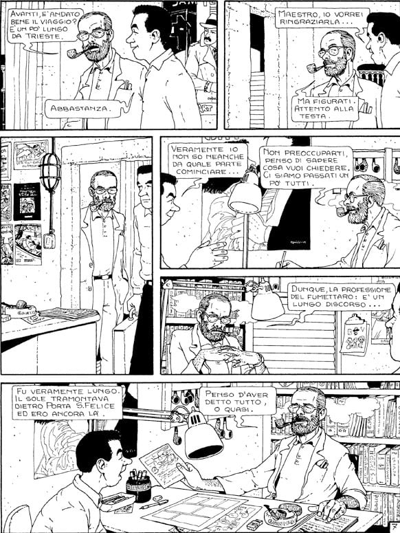 AO: Mi vuole parlare del suo incontro e rapporto con quello che per lei è il Maestro, Vittorio Giardino? Se non sbaglio, anche Giardino aveva compiuto un viaggio professionale passando dal mestiere di ingegnere a quello di fumettista.