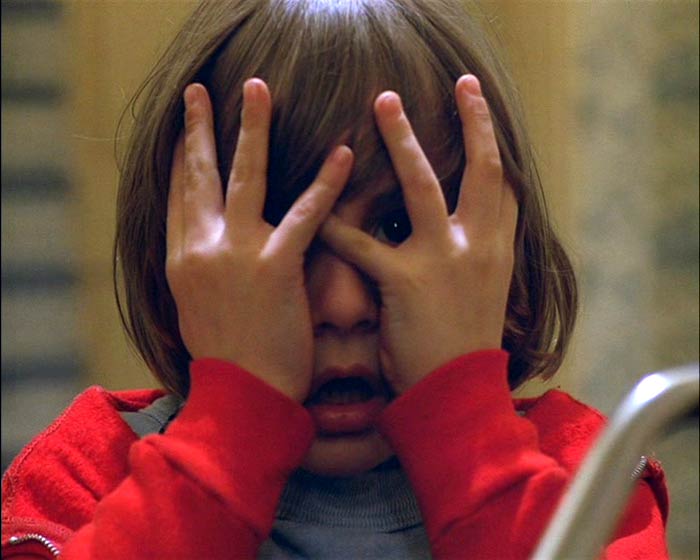 Anche in Shining questa contraddizione appare evidente: lo spettatore è spiazzato di fronte alla comparsa delle due bambine gemelle che si tengono per mano nel corridoio, in quello spazio che solo un attimo prima era vuoto. Sappiamo che l’albergo è deserto, chiuso, che può essere solo un’apparizione, eppure questa parola risulta inadeguata davanti a un’immagine che non porta nessuna marca soggettiva, nessun indice di allucinazione suggerito da un particolare movimento della macchina da presa, o da un commento musicale. E in Full Metal Jacket, nonostante un Vietnam rappresentato in modo molto teatrale, Kubrick mostra un’intervista della televisione, una sorta di cinema diretto, insinuando che, poiché guardano in macchina e parlano agli spettatori, quelli dovrebbero essere soldati veri.