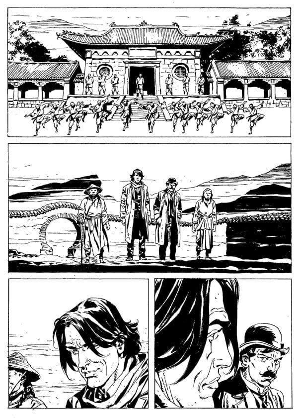 GM: Sì, Burak ha esordito in Bonelli con Volto Nascosto. Mi serviva un disegnatore turco perché più a suo agio con le architetture e i personaggi dell’area islamica. Similmente ho cercato di preferenza autori romani, più a loro agio con gli scenari della Roma dell’epoca. Altri disegnatori non avrebbero saputo distinguere un edificio all’epoca esistente da un altro costruito dopo. Infatti se ci si fa caso, i disegnatori che non conoscono abbastanza Roma (come Freghieri) hanno preferito stare più stretti sui personaggi (facendo peraltro un ottimo lavoro). Rotundo invece che è stato anche assistente scenografo, ha dato risalto alle scenografie e agli ambienti con uno scrupolo davvero unico e preziosissimo per la serie. In Volto Nascosto e anche nel prossimo Shanghai Devil, paesaggio e ambienti sono protagonisti tanto quanto i personaggi. Non è una mia mania. È il racconto epico a prescrivere questo. Come si fa a raccontare Lawrence d’Arabia se si stringe sempre sui primi piani? Guardate i film cinesi di John Woo, per dirne uno. Cosa diventerebbero togliendo le sontuose scenografie, i paesaggi, le scene di massa, i costumi, stringendo tutto sui primi piani?
