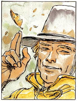 IM: In genere cerco sempre di eseguire anche la colorazione tramite l’acquarello. Il personaggio è stato pensato in tre cartonati per Les Humanoïdes Associés. Esistono una ventina di pagine già realizzate dell’episodio successivo, ma, dopo le vicende societarie dell’editore, con Artibani abbiamo pensato a una rivisitazione della prima storia per concludere la vicenda in due volumi come graphic-novel.