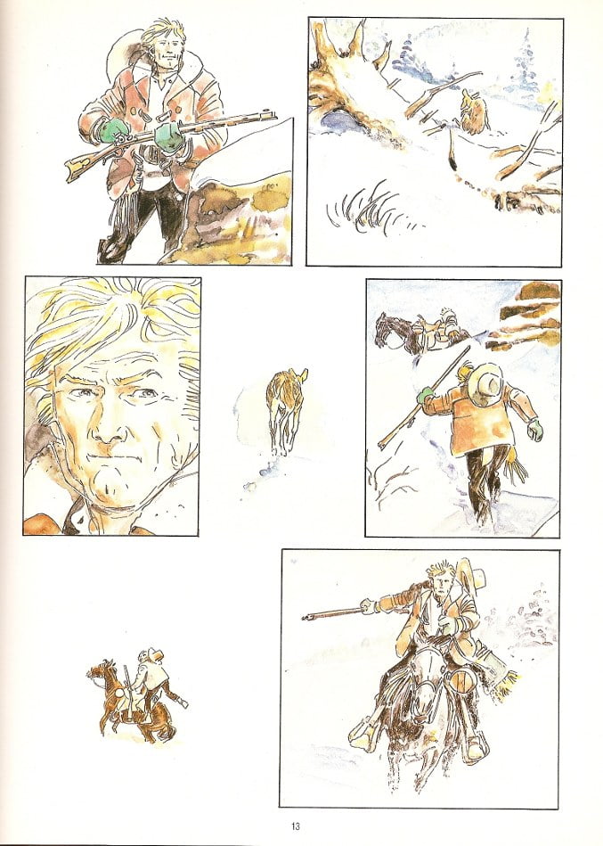 AO: L’assenza di retorica nella narrazione rende le storie di Ken Parker più reali e immediate. A questo risultato danno un contributo fondamentale i tuoi disegni. Il tuo obiettivo è sempre stato quello di trasmettere un’immagine diretta al lettore, di far recitare i personaggi, di esprimere le loro emozioni. In altre parole, se la pagina non comunica all’animo del lettore è inutile, anche se è tecnicamente bella. Al di là delle tue doti naturali, dietro a tutto questo c’è stato, immagino, un lavoro immenso. Ce ne vuoi parlare?