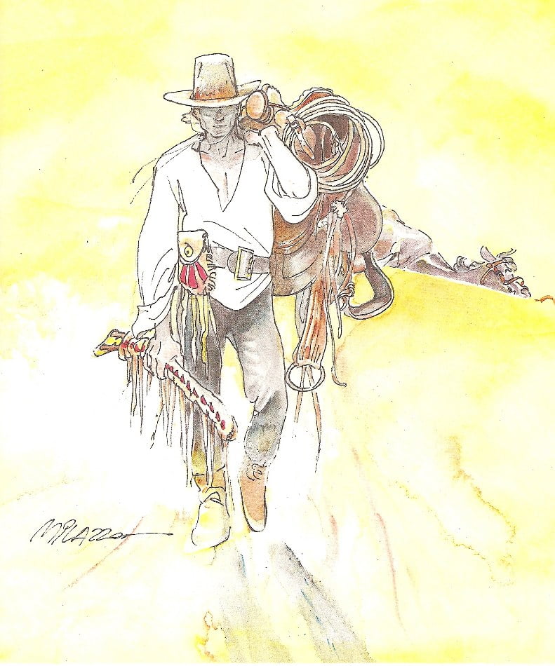 AO: Il magazine conobbe comunque delle difficoltà, suppongo anche organizzative, tanto che la scadenza mensile non veniva sempre rispettata. Alla fine Bonelli rilevò la testata e continuaste ancora per diversi numeri con il rinnovato supporto dell’editore milanese. Evidentemente Bonelli credeva nel progetto e amava il personaggio. Tuttavia la formula magazine, oltre che il mondo del fumetto in generale, stava conoscendo un periodo di crisi che dettò la fine della serie (i quattro numeri speciali finali, tornati al tradizionale formato Bonelli, non riuscirono ad invertire la tendenza). A distanza di anni si può dire che la motivazione della fine di Ken Parker sia stata l’impossibilità pratica ed economica di coniugare le vostre esigenze narrative, tematiche e stilistiche in un prodotto editoriale concreto e realizzabile?