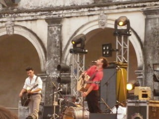 Mentre quelle che sembrano super-celle in stile tornado in Oklahoma fanno già capolino, enormi punti di domanda si formano su gran parte delle teste presenti. I palermitani Pan del Diavolo sembrano salire sul palco per ricacciare indietro le forze della natura, chissà, forse il suono della grancassa a sonagli di Alessandro Alosi e le dodici corde roventi di entrambi potrebbero innescare una specie di rito voodoo, come abbiamo avuto l’impressione di vedere a Trieste, settimane fa, nell’ambito dell’Opening Band Festival. Sì, quella sera le convulsioni dei due sanguigni folkers erano più esplosive, stasera sembrano più contenute. Cantano le loro rime, velenose come il pane luciferino, e la folla muove le gambe a ritmi popolari come non se ne vedono tanti, di questi tempi e di questi giovani. All’orizzonte spunta in lontananza un arcobaleno, che sembra parlarci da mille chilometri e dirci che sarà l’unico che vedremo quella sera.