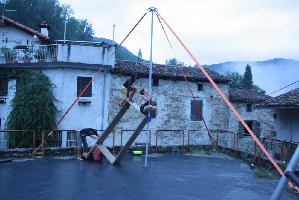 Il centro nevralgico è la Domus pacis di Roberto Magro, che ha allestito la mansarda a foresteria per i suoi ginnasti, lì si decide come gestire la giornata in base alla clemenza del tempo, ergo si opta quasi sempre per l’improvvisazione, anche se la qualità degli spettacoli fa pensare che poco sia merito del caso.