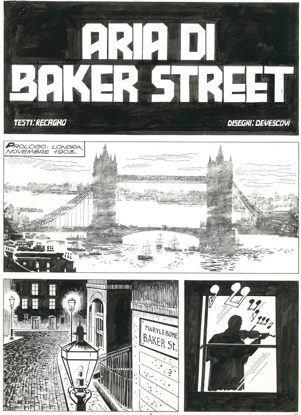 Gli sceneggiatori dovrebbero avere un periodo di stasi in cui scrivere solo storie complete, con le quali poi rifornire i disegnatori. L’unica storia che ho ricevuto tutta intera è stata Aria di Baker Street, la prima che scrisse Recagno e lui, proprio perché era la prima, l’aveva portata in toto da Castelli per farla approvare. Dopo fu assunto. Fra parentesi Recagno l’aveva disegnata tutta con degli schizzi tavola per tavola, tanto che all’inizio mi ero trovato a disagio, ma poi la vidi come una traccia tutto sommato anche gradevole e quindi la seguii. Invece Castelli era completamente inaffidabile nel mandare le tavole: diceva «Domani te ne mando cinque!» ma non sapevi mai se domani fosse effettivamente il giorno successivo a quello in cui ti aveva telefonato oppure un giorno a caso nel futuro. Ora è migliorato, per fortuna.