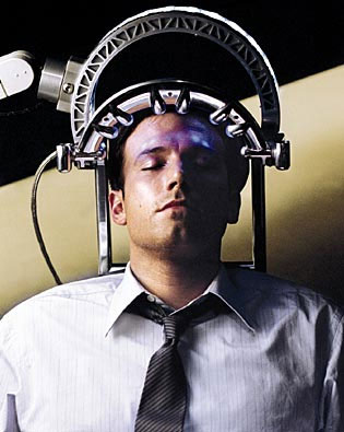 Il film elabora e figurativizza il meccanismo di cancellazione della memoria soltanto presupposto dal racconto, grazie al quale Jennings riesce ad ‘impiegare’ porzioni del suo cervello in operazioni di spionaggio industriale in cambio di cospicue somme di denaro. Il collega Shorty (Paul Giamatti) supporta Jennings nell’operazione rimozione dei ricordi, collegandolo ad un macchinario con il quale gli recide tutte le tracce mnestiche fino all’indicatore.