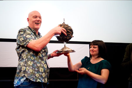 ScienceplusFiction ci ha permesso quest’anno di confrontarci ancora una volta con le nostre paure più profonde, di esorcizzare i nostri incubi attraverso sguardi sull’ignoto e l’inconosciuto, di ridicolizzare i miti delle nostre credenze più incrollabili. Lo ha fatto facendoci incontrare di nuovo gli zombie nei centri commerciali e nelle cittadine di provincia del maestro Romero (l’esalogia dei Morti Viventi), i suoi giovani alle prese con il proprio latente vampirismo (Martin, il film che ha dichiarato essere il suo preferito). Lo ha fatto facendoci guidare da Werner Herzog in un viaggio nell’oscurità delle caverne preistoriche con i loro misteriosi dipinti, accompagnandoci con il “Focus Russia” ai primordi della conquista spaziale, mostrandoci alcune declinazioni grottesche e al tempo malinconiche del confronto con l’alieno dentro e fuori di noi (L’arrivo di Wang dei Manetti Bros, in concorso, vincitore del premio Nocturno e del Meliés d’argento, e il fenomenale L’ultimo terrestre di Gipi, che ha fatto incetta di premi al Festival di Venezia ed è stato poi “castigato” al botteghino da una criminale distribuzione). In concorso, oltre a Monsters e al già citato film dei Manetti, degni di nota anche lo Stakeland di Jim Mickle, che si è aggiudicato il premio del pubblico, storia di un manipolo di sopravvissuti in fuga dai vampiri che hanno invaso l’America, nel cast il ripescaggio di una Kelly McGillis incredibilmente in parte; Extraterrestrial, seconda prova del vulcanico Nacho Vigalondo, già vincitore dell’Asteroide 2007 con il brillante Cronocrìmenes, altra declinazione claustrofobica dell’invasione aliena; Nuclear Family di Kyle Rankin, road movie postatomico con uno strepitoso Ray Wise; The Prodigies, di Antoine Charreyron, animazione adrenalinica su un gruppo di adolescenti con superpoteri; l’ottimo Saint, per la regia del prolifico Dick Maas, che ci porta ancora una volta – dopo la spettacolare incursione, l’anno scorso, del Rare Exports di Jalmari Helander, favola horror-grottesca su un Babbo Natale fuori dagli schemi (vincitore del Meliés d’argento e del premio del pubblico) – a confrontarci con le leggende spaventose sul Natale, stavolta seguendo un sanguinario Santa Klaus (St. Niklas, nell’Olanda di Maas) nelle sue scorribande di stagione. Altra piacevole sorpresa, l’incubo televisivo del regista croato Nevio Marasović con il suo The Show Must Go On, un Grande Fratello postapocalittico davvero spettacolare. Fra i corti, come sempre molto seguiti, ha trionfato lo svedese Out of Erasers (SUDD) di Erik Rosenlund, che ha portato a casa il Méliès d’Argento per il miglior cortometraggio fantastico europeo.