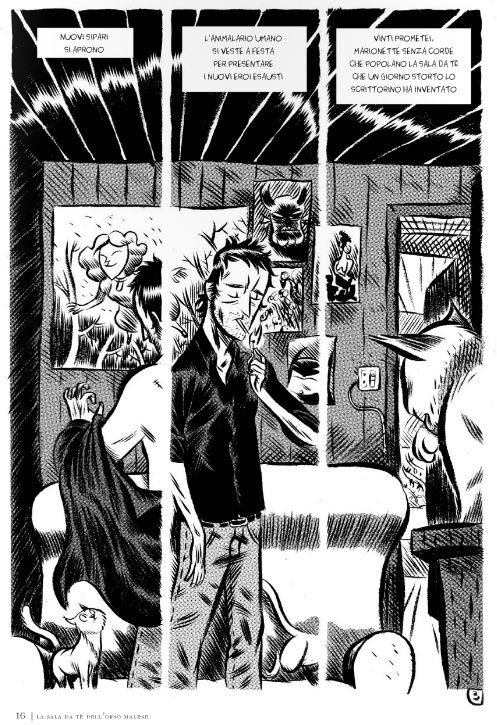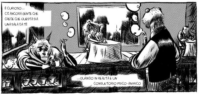 Per stessa ammissione dell’autore, il “vero” inizio de La sala da tè dell’orso malese, la parte che ne giustifica il titolo, è proprio questo secondo frammento in cui veniamo a conoscenza delle origini di Sigfrido che in Dietro il bancone era in fondo solo un personaggio di contorno. Da qui in poi il lettore si incammina in un terreno minato in cui non potrà mai capire se oltre il frontrespizio delle singole storie ci sarà un po’ di sollievo, o almeno di speranza, per i tormentati protagonisti.