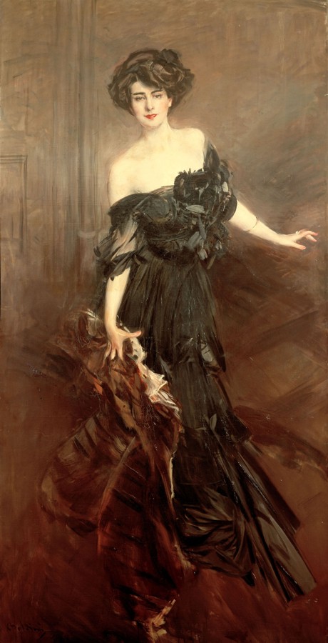 Quadro di BoldiniNon è un caso che una delle figure portanti dell’immaginario maschile fosse la Madonna, vista come simbolo di materna purezza lontana da qualsiasi rapporto con la sessualità. A essa si contrapponeva la seduttrice, il cui unico scopo era dare piacere all’uomo senza generare con lui dei figli. Esisteva, tuttavia, anche una terza figura femminile, quella che l’uomo venerava e idealizzava pur considerandola irraggiungibile: la musa. Il risultato di questa netta distinzione erano mogli e madri a cui veniva negato qualsiasi rapporto sessuale non destinato alla procreazione, amanti che fungevano da semplice “oggetto di piacere” e donne che esistevano solo nella mente di chi le sognava (Cfr. Michel Winock 2002, pp. 153-154)