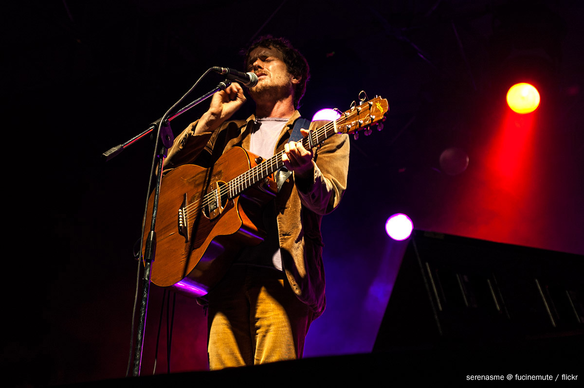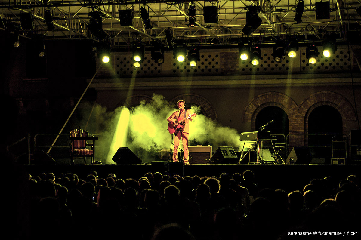 Dopo cinque anni di assenza dai palchi italiani, Rice ritorna quest’anno sui nostri lidi per una breve serie di date, fra il 25 e il 31 luglio: Grado, Ferrara, Firenze e Roma. E noi lo andiamo a sentire proprio all’Isola del Sole per il suo primo appuntamento italiano in un’estate che l’ha visto esibirsi già in Francia, Austria, Belgio, Lettonia e Turchia. La diga Nazario Sauro ospita questa data del Grado Festival Ospiti d’Autore, in una serata umida, fitta di zanzare, che nulla però possono contro lo splendido panorama della scogliera protesa sul mare aperto, ancora fievolmente accesa da un sole che stenta a calare. Il pubblico si dispone alla spicciolata nei posti numerati che ci sembrano in disarmonia con il tenore delle note che andremo a sentire: ci saremmo quasi aspettati di poterci accomodare per terra, le gambe incrociate, come si fa davanti ad un falò sulla spiaggia – forse non siamo così immuni agli stereotipi, in fondo. Si aspetta che cali il buio, e ci sistemiamo con una birra, – che a questo punto avrebbe dovuto essere una Guinness, per coerenza – proprio così, per terra a lato del palco, nella speranza che la security non sia troppo ligia e gli spettatori confinati sulle sedie troppo rancorosi. Damien Rice lascia scorrere il classico quarto d’ora accademico prima di irrompere sulla scena dove campeggiano soltanto un pianoforte, un microfono e una poltrona vagamente retrò, quasi nascosta a lato del palco insieme a un tavolino, e attacca subito con una Older Chests quasi soffiata, inno allo scorrere del tempo che cambia le cose, seguita immediatamente dalla più ritmata Coconut Skins, tratta dal suo secondo album, qul “9” che lo ha definitivamente fatto assurgere allo status di star internazionale.