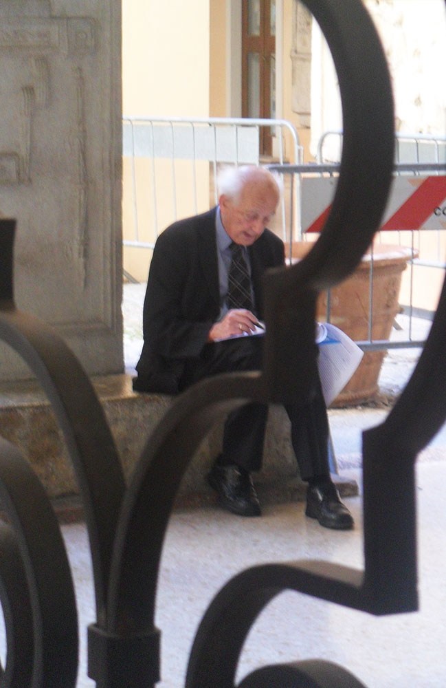 Bauman Lo incontriamo nel chiostro del Palazzo dei musei mentre ripassa il discorso come uno studente che sta per sostenere un esame. Lo chiamiamo affettuosamente Ziggy; habitué del festival deve piacergli l’Italia, o forse viaggiare lo distoglie dalla tristezza di aver perso la moglie. E di relazioni parla, nel suo lucidissimo intervento a braccio. Fa presente come si faccia fatica a stabilirne di profonde, perché manca l’accettazione del rischio, bacchetta i rapporti umani, corrosi dagli interessi personali di ciascuno, sottolinea come le tecnologie ci diano soddisfazione per la parvenza di avere potere, mentre per un ritorno ai genuini primordi sia necessario ristabilire biunivoche relazioni bastate sul dialogo e non sul consumo. Viviamo a credito senza aspettarci di dover pagare l’esaurimento delle risorse e il debito che ne consegue è lo smantellamento della dignità umana.