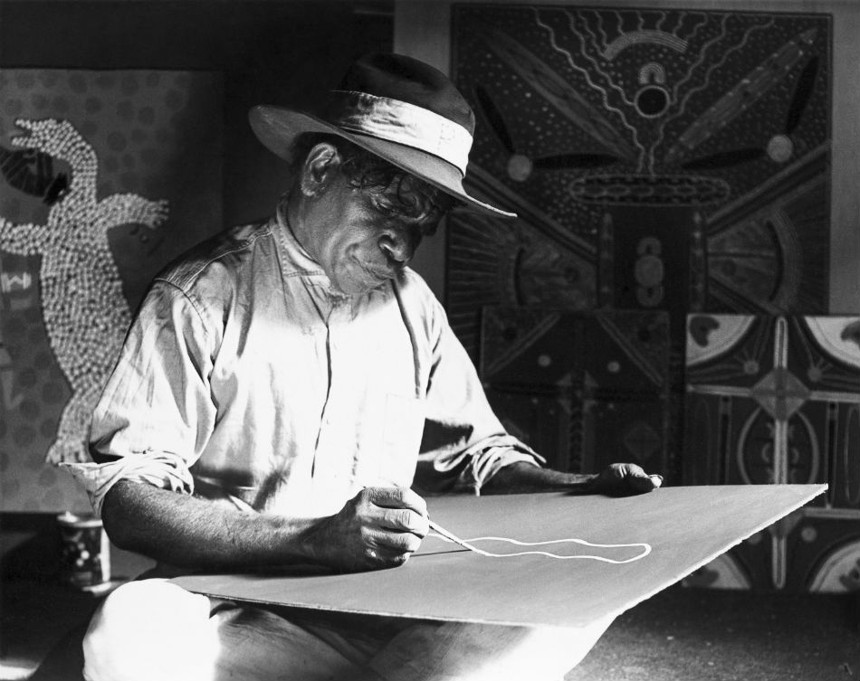 La produzione pittorica australiana nasce in realtà come una drammatica affermazione identitaria, emersa per far fronte ad una aggressione culturale che non ha forse paragoni, poiché passata sotto il silenzio e quasi il diniego: anche l’idea di dipingere non fu degli aborigeni, ma fu trasmessa loro da un bianco, Goeffrey Bardon. Questo professore di disegno, arrivato a Papaunya nel 1971, restò talmente indignato per le condizioni in cui gli aborigeni venivano trattati che chiese ai giardinieri di una scuola di decorare i muri dell’edificio con i loro motivi tradizionali. Questo atto segnerà l’inizio di un rinnovamento all’intero della cultura aborigena, e la nascita di una feconda scuola di pittura. Goeffrey Bardon sarà poi invitato dalla autorità australiane a lasciare il paese in quanto “fonte di disordine”, ma la magia di quei segni aveva ormai incantato il mondo, e lentamente sempre più dipinti emergevano dal deserto, lasciando scoprire, in tutta la loro magnificenza, nuovi simboli e colori.