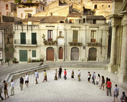 Invece che una distinzione netta tra luogo e non luogo, tra affermazione e dispersione, è proprio in questa strategia di continuità che si sviluppa la grande potenzialità dell’epoca moderna. Consapevole e responsabile della propria posizione, l’essere umano ha sempre avuto e sempre avrà la possibilità di reinvestire di significato i luoghi che lo accolgono, di fondare una comunità all’interno di una prospettiva globale, di costruire una identità che sommi tradizione ed effimero. Le opere di Adrian Paci ci raccontano il dramma della separazione, lo choc per la perdita delle proprie radici, ma soprattutto l’energia e la poesia di un mondo fatto di piccoli rituali che iscrivono il passaggio verso l’ignoto in una prospettiva di continuità. Secondo l’artista, la funzione dei rituali è appunto quella di marcare un passaggio da uno stato ad un altro, creando un momento finzionale che ci aiuti ad affrontare la durezza della realtà. Il rito ha un aspetto collettivo, ma si rivolge all’individuo; è legato alla tradizione, ma accompagna dei grandi momenti di cambiamento e rinnovamento. La produzione artistica di Adrian Paci riformula i codici del rituale con affezione e allo stesso tempo distacco, cercando di proporre una prospettiva inedita sui concetti di appartenenza e prossimità.